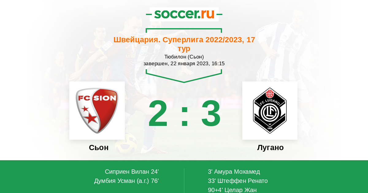 Сьон - Лугано: обзор матча 22 января 2023