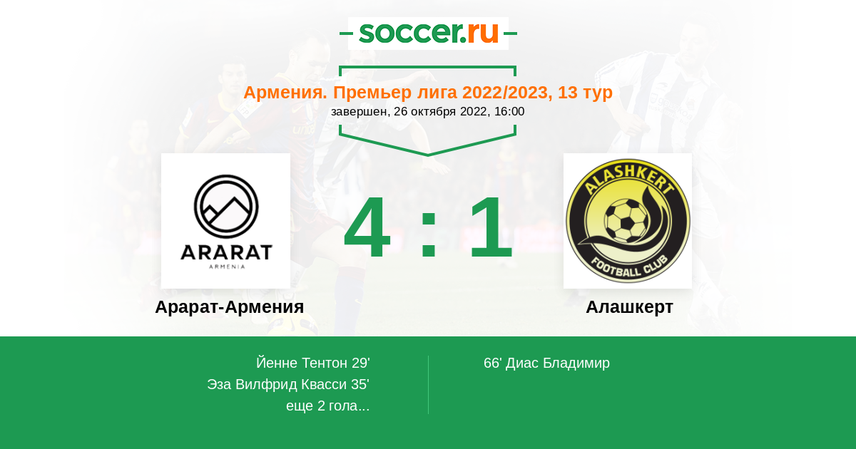 Арарат-Армения - Алашкерт: обзор матча 26 октября 2022