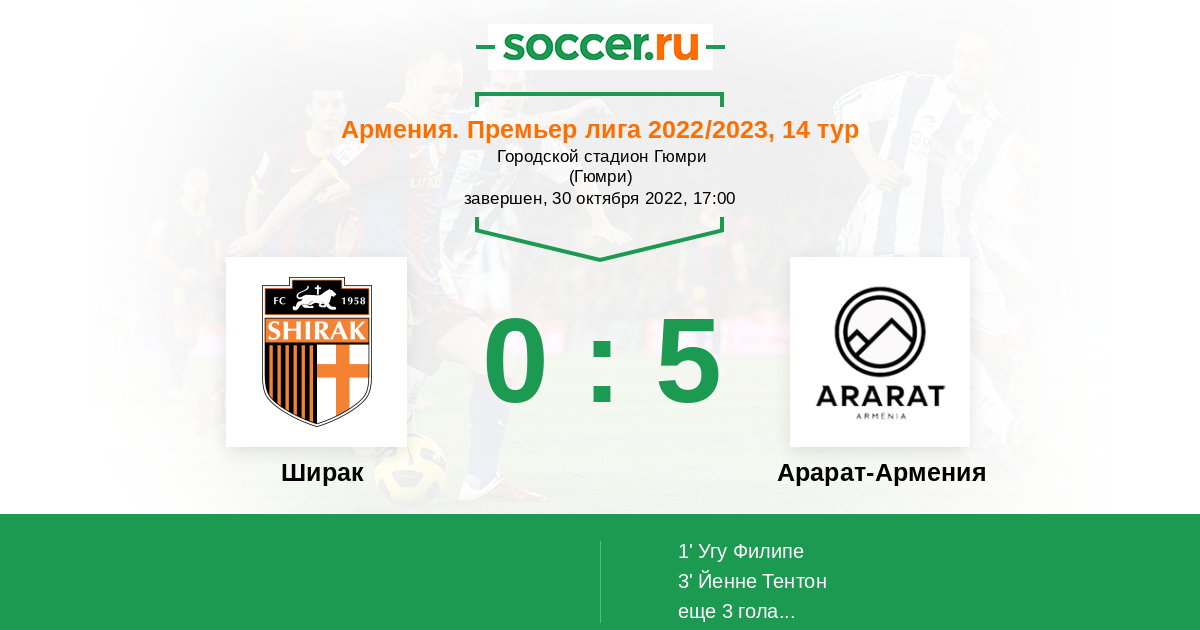 Ширак - Арарат-Армения: обзор матча 30 октября 2022