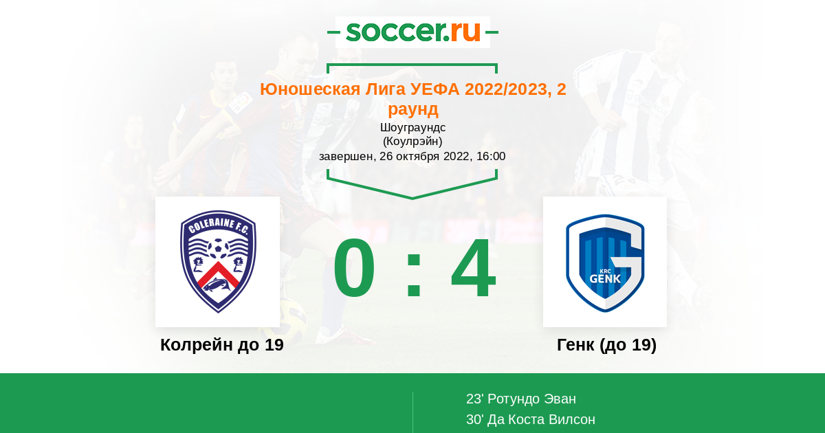 Колрейн до 19 - Генк (до 19): обзор матча 26 октября 2022