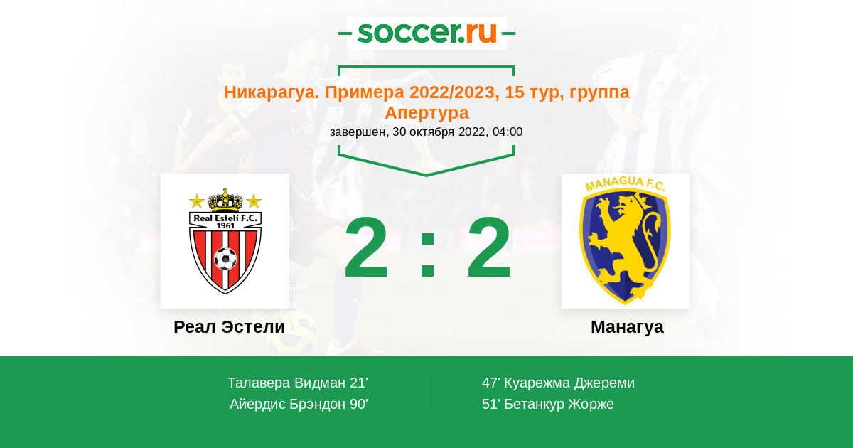 Реал Эстели - Манагуа: обзор матча 30 октября 2022