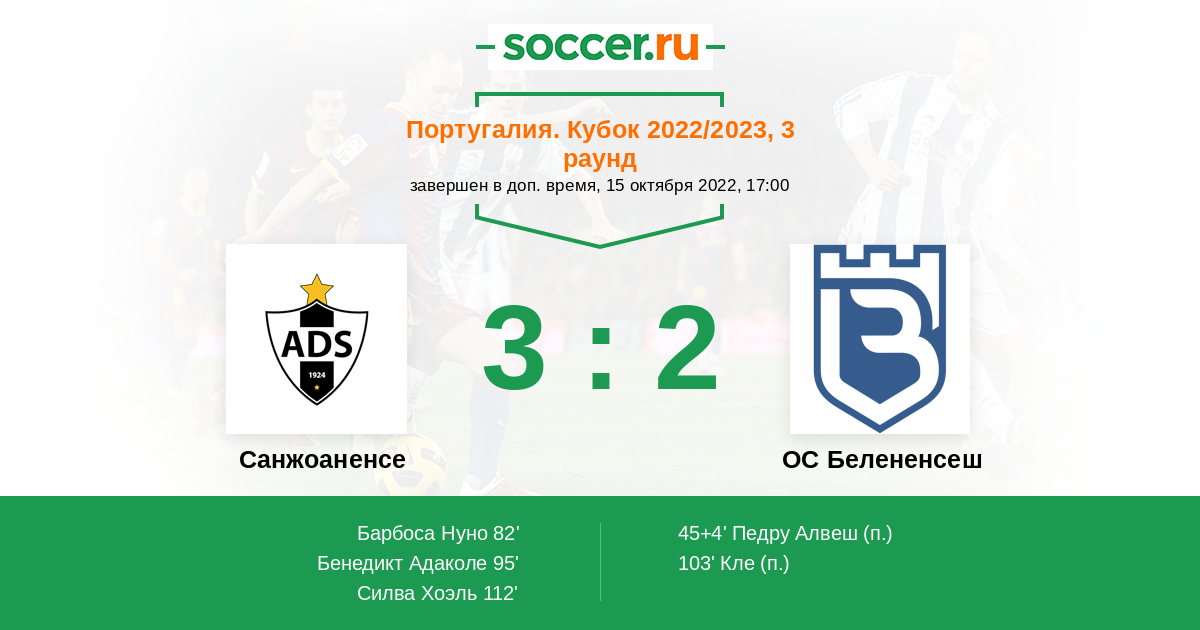 Санжоаненсе - ОС Белененсеш: обзор матча 15 октября 2022