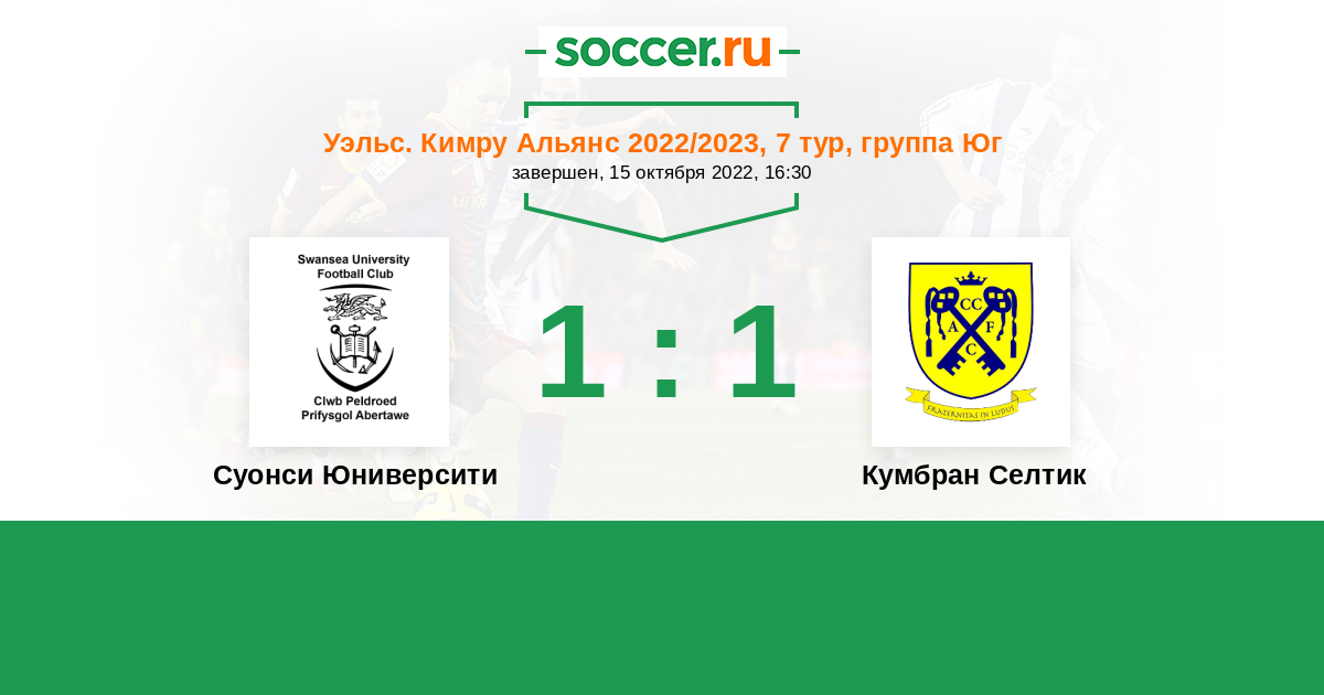 Суонси Юниверсити - Кумбран Селтик: обзор матча 15 октября 2022