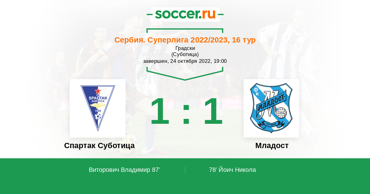 Спартак Суботица - Младост: обзор матча 24 октября 2022