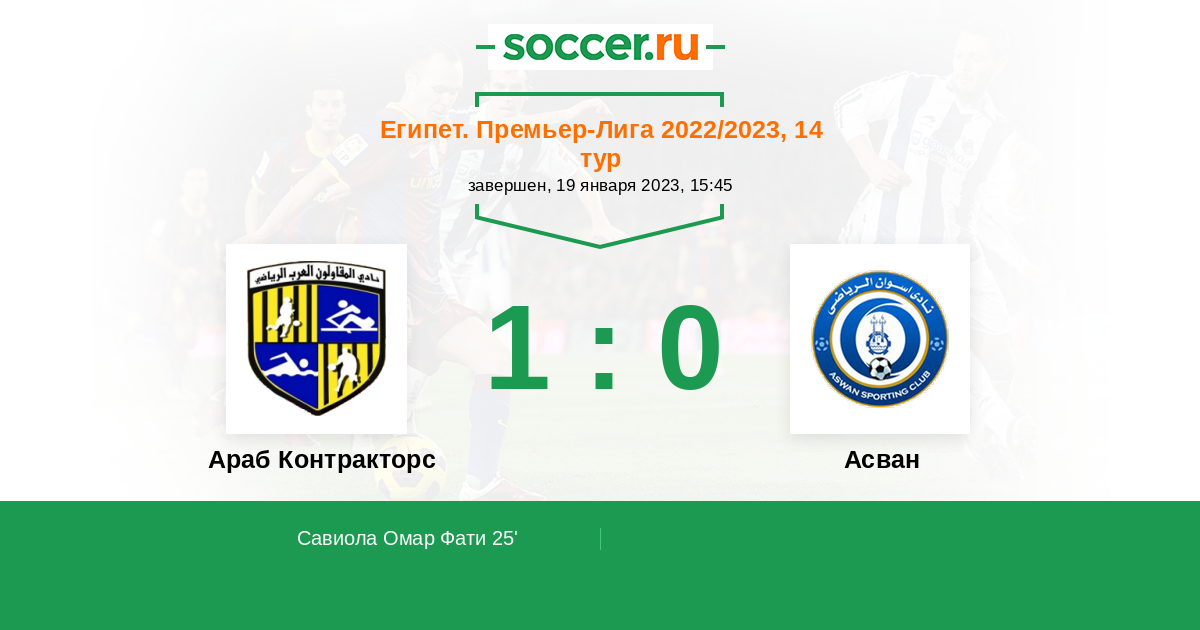 Араб Контракторс - Асван: обзор матча 19 января 2023