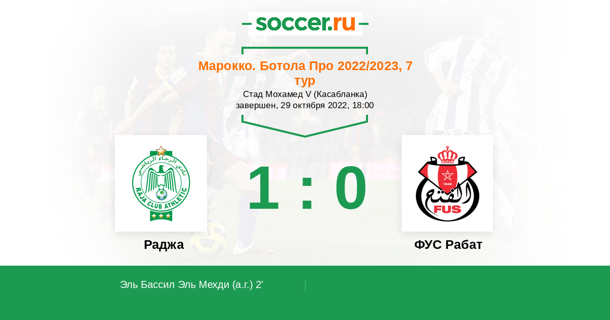 Раджа - ФУС Рабат: обзор матча 29 октября 2022
