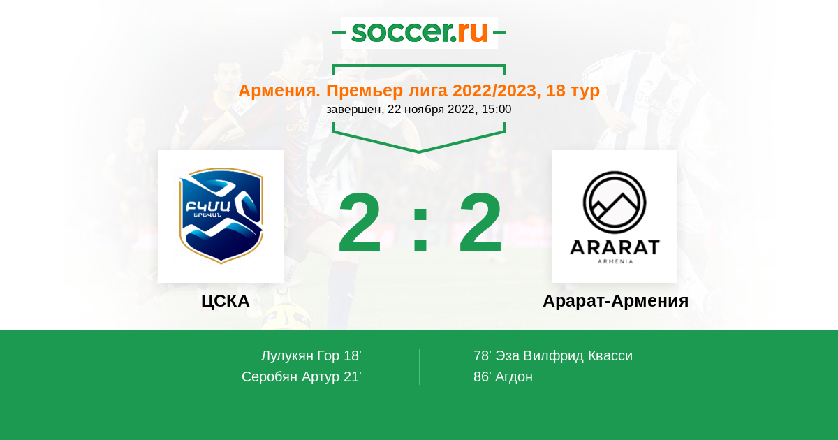 ЦСКА - Арарат-Армения: обзор матча 22 ноября 2022