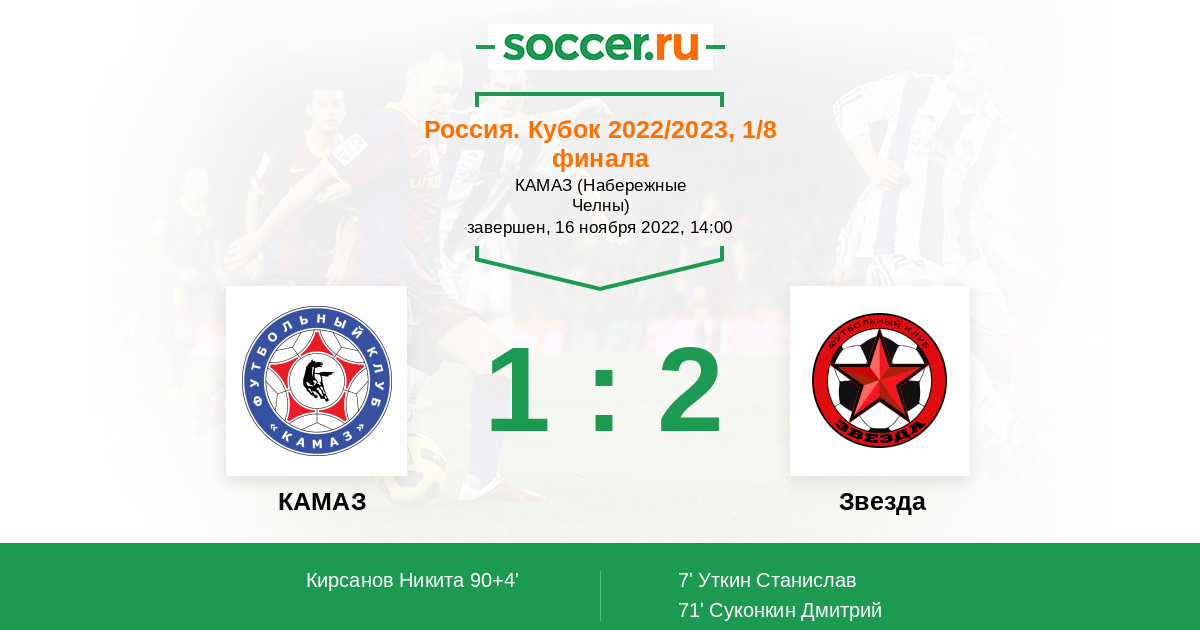 КАМАЗ - Звезда: обзор матча 16 ноября 2022