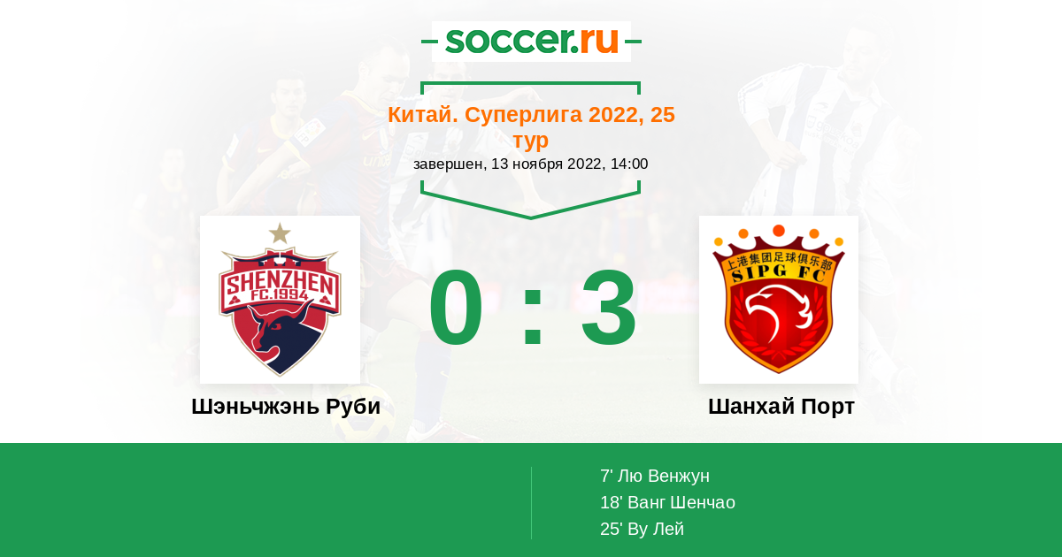 Шэньчжэнь Руби - Шанхай Порт: обзор матча 13 ноября 2022
