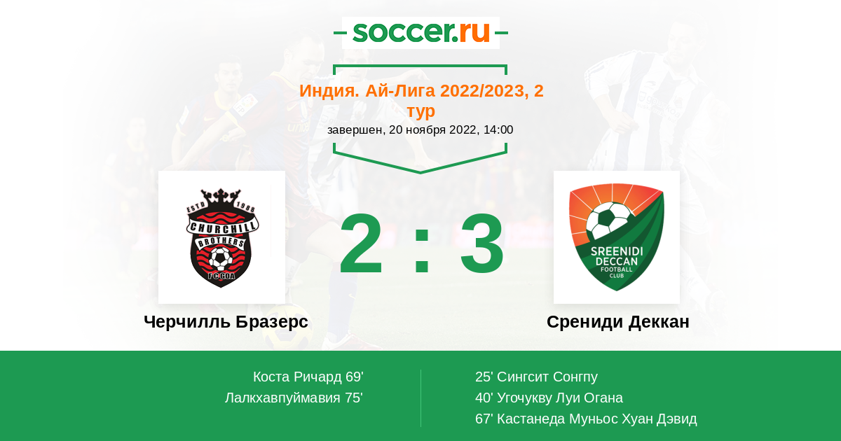 Черчилль Бразерс - Срениди Деккан: обзор матча 20 ноября 2022