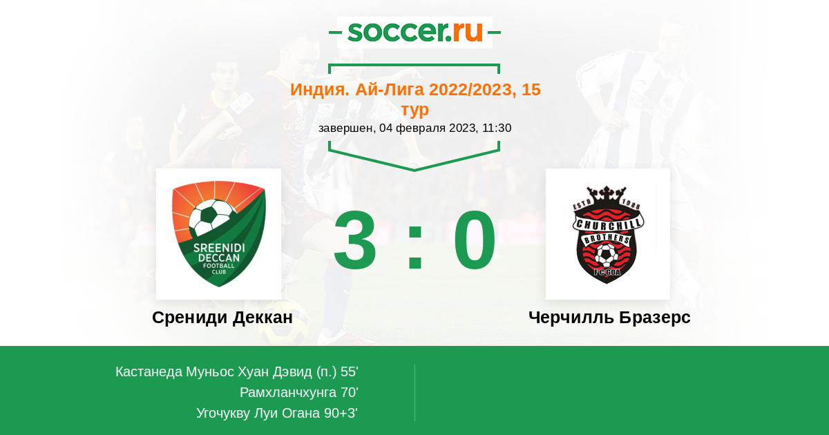 Срениди Деккан - Черчилль Бразерс: обзор матча 4 февраля 2023