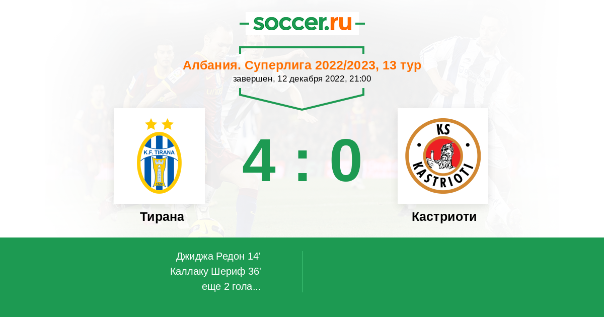 Тирана - Кастриоти: обзор матча 12 декабря 2022