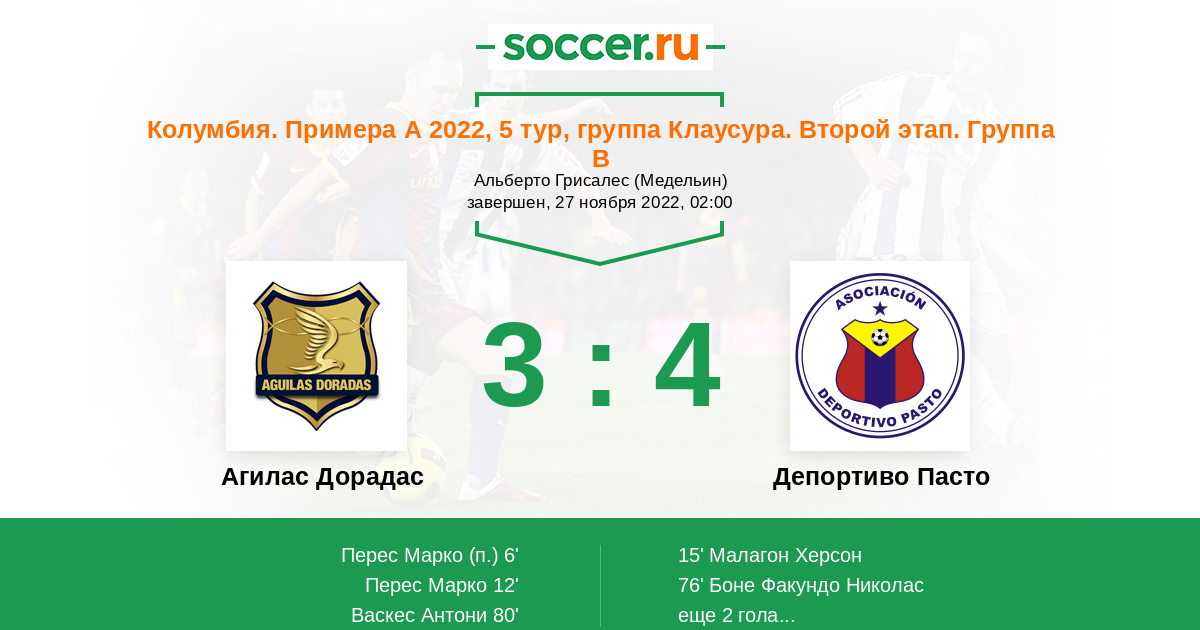Агилас Дорадас - Депортиво Пасто: обзор матча 27 ноября 2022