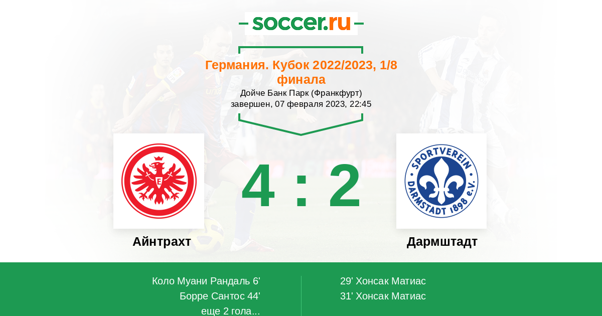 Айнтрахт - Дармштадт: обзор матча 7 февраля 2023
