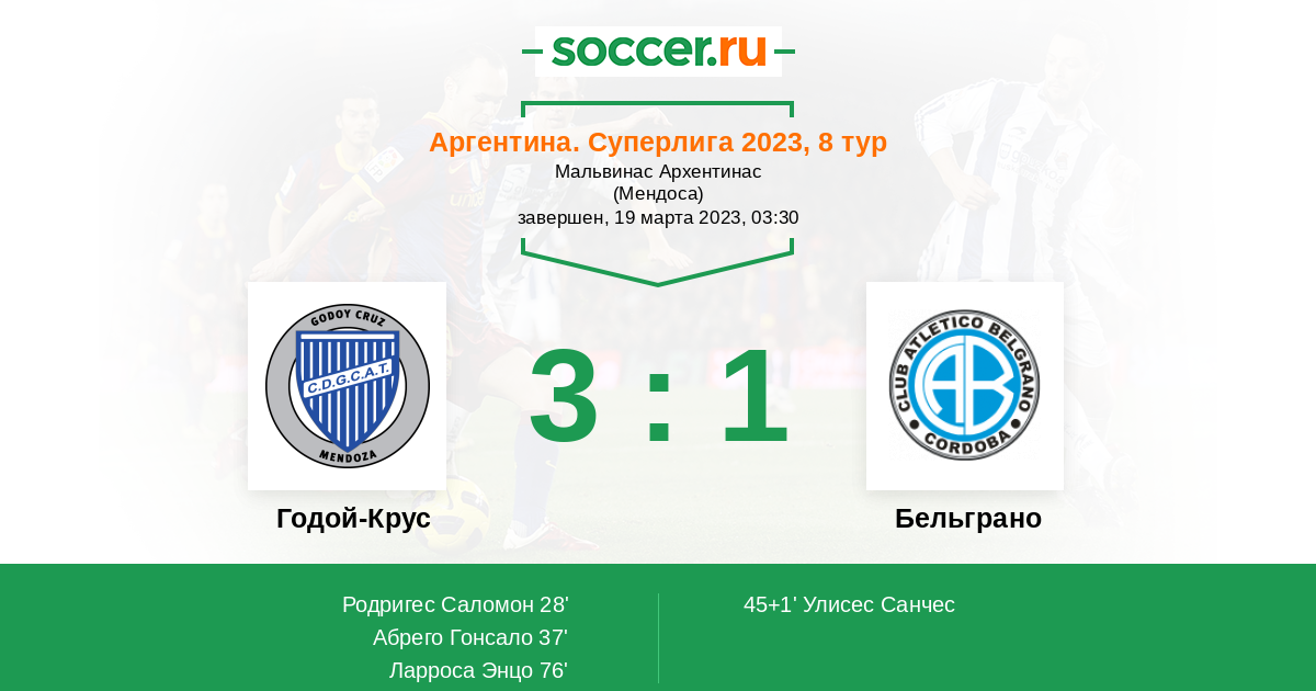 Годой-Крус - Бельграно: обзор матча 19 марта 2023