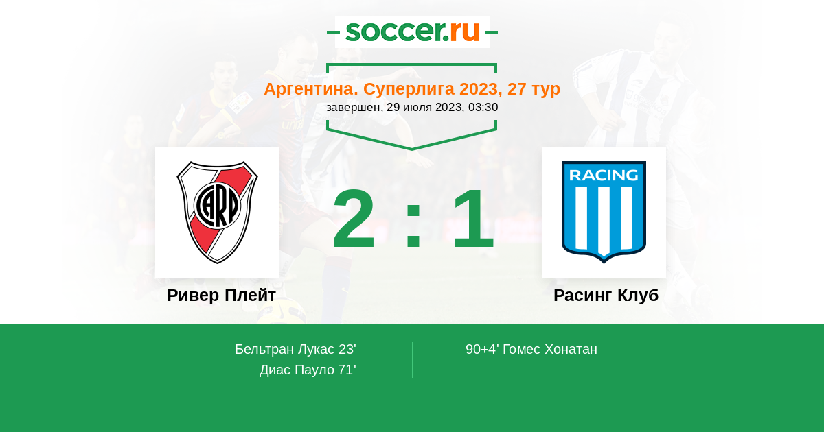 Ривер Плейт - Расинг Клуб: обзор матча 29 июля 2023