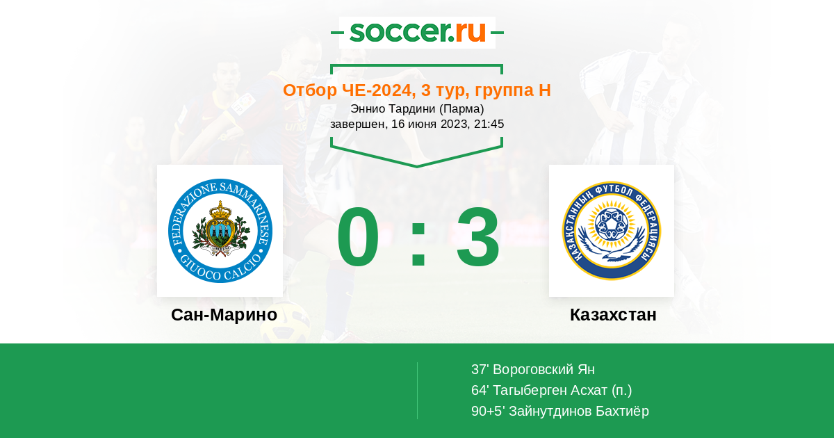 Сан-Марино - Казахстан: обзор матча 16 июня 2023