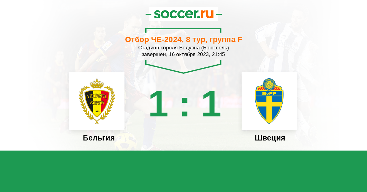 Бельгия - Швеция: обзор матча 16 октября 2023