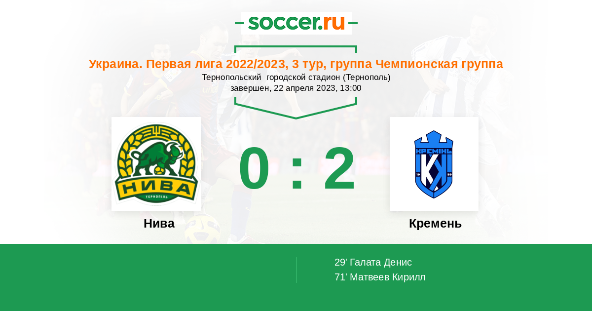 Нива - Кремень: обзор матча 22 апреля 2023