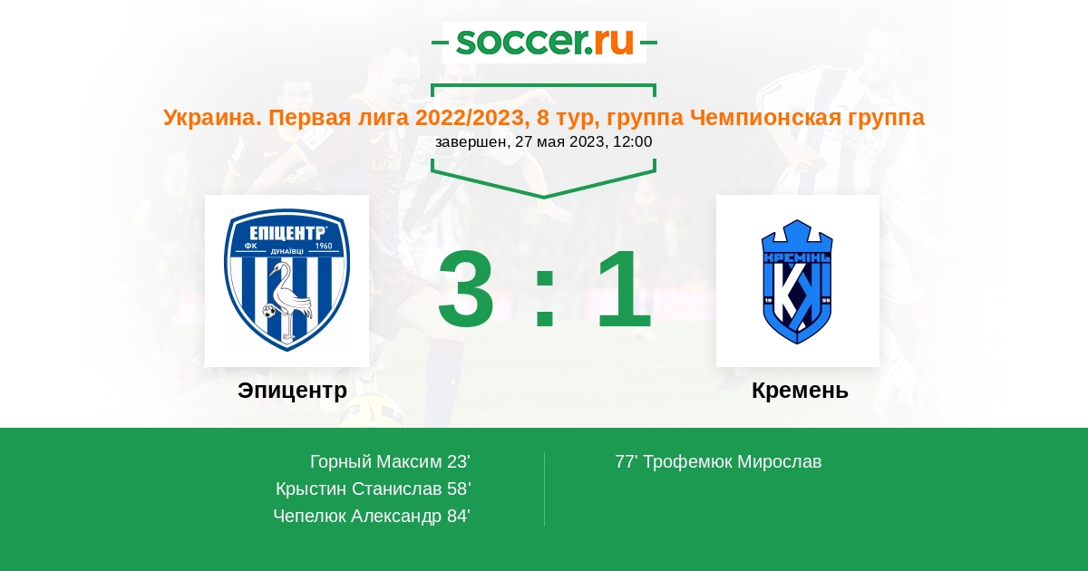 Эпицентр - Кремень: обзор матча 27 мая 2023