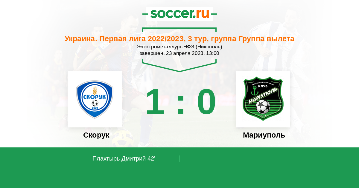 Скорук - Мариуполь: обзор матча 23 апреля 2023