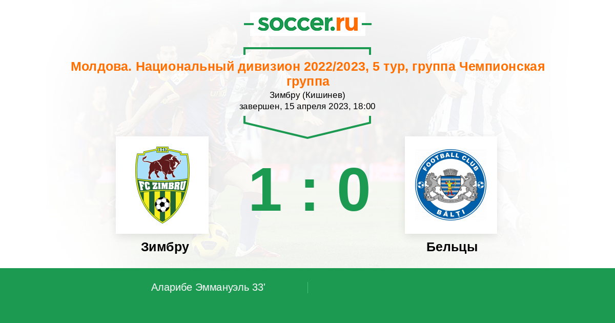Зимбру - Бельцы: обзор матча 15 апреля 2023