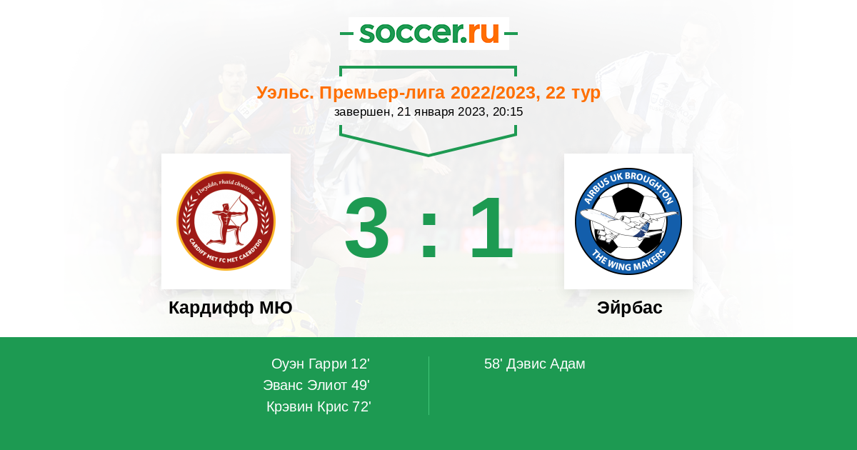 Кардифф МЮ - Эйрбас: обзор матча 21 января 2023
