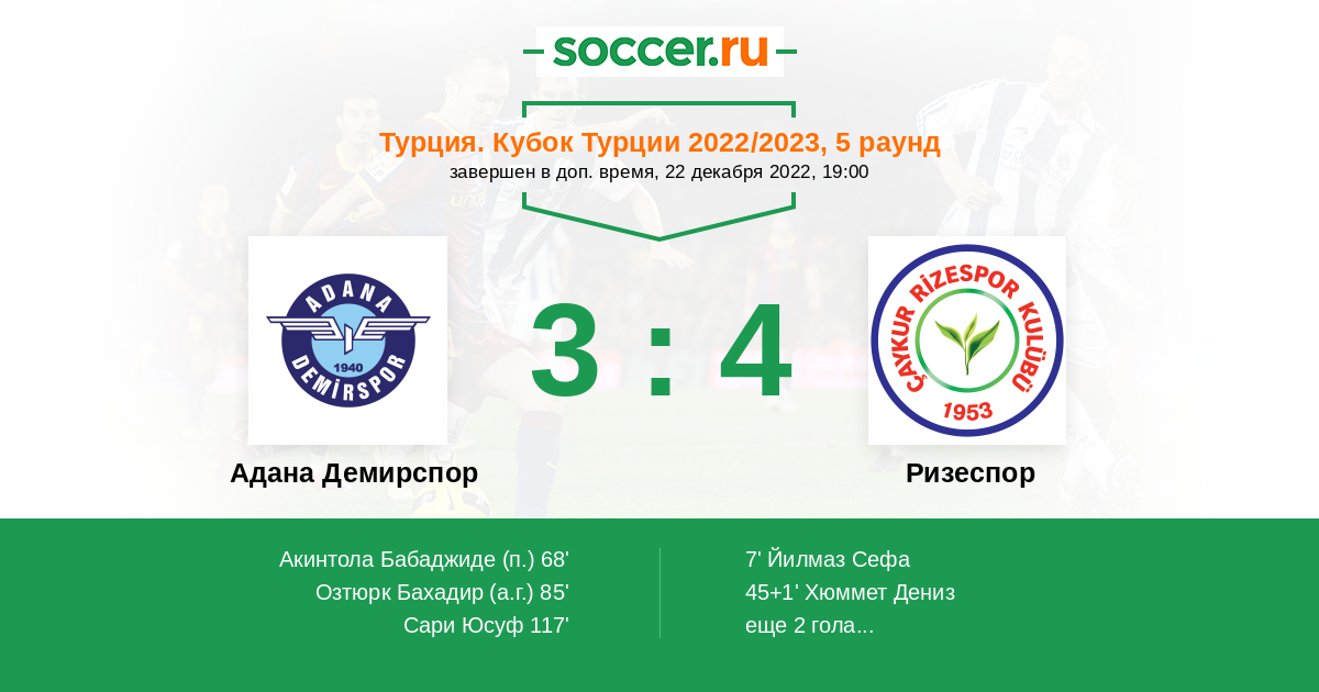 Адана Демирспор - Ризеспор: обзор матча 22 декабря 2022