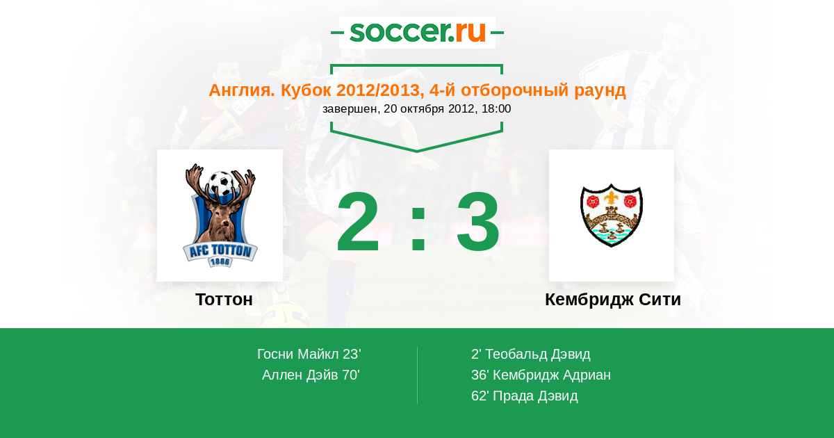 Тоттон - Кембридж Сити: обзор матча 20 октября 2012