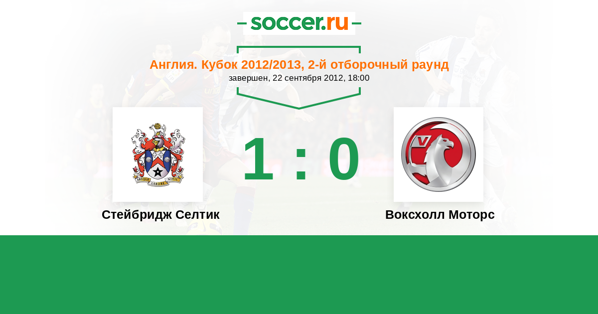 Стейбридж Селтик - Воксхолл Моторс: обзор матча 22 сентября 2012