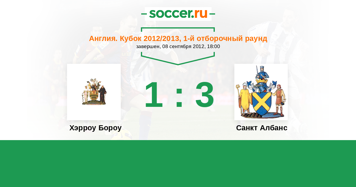Хэрроу Бороу - Санкт Албанс: обзор матча 8 сентября 2012