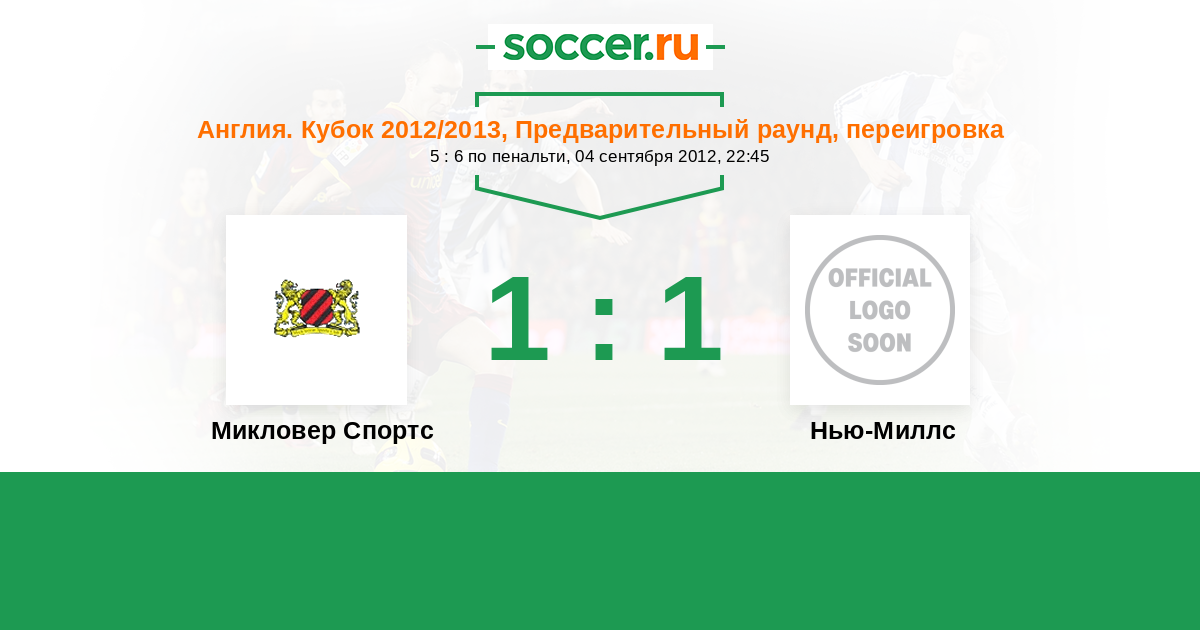 Микловер Спортс - Нью-Миллс: обзор матча 4 сентября 2012
