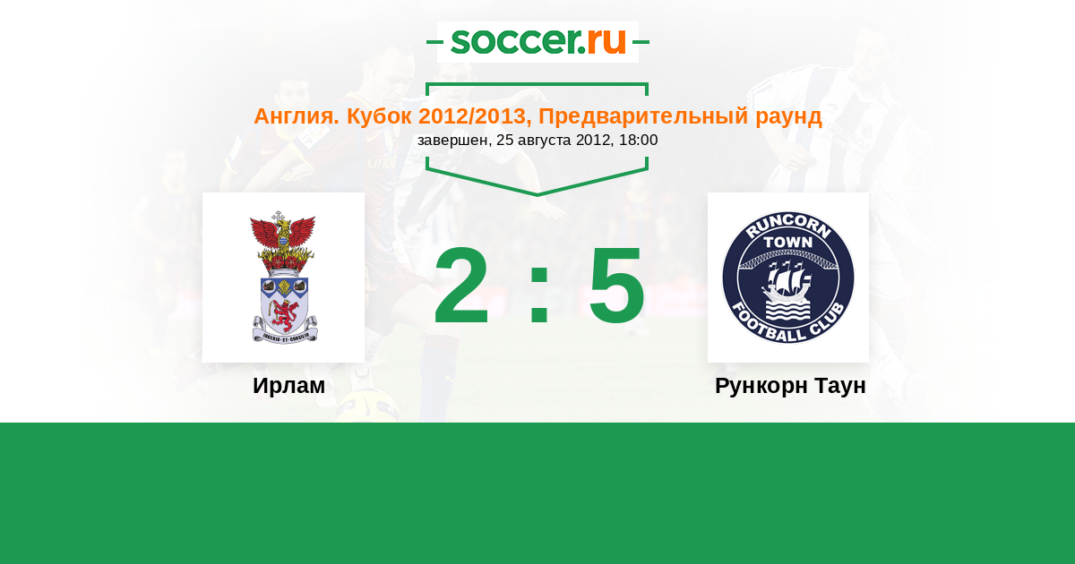 Ирлам - Рункорн Таун: обзор матча 25 августа 2012