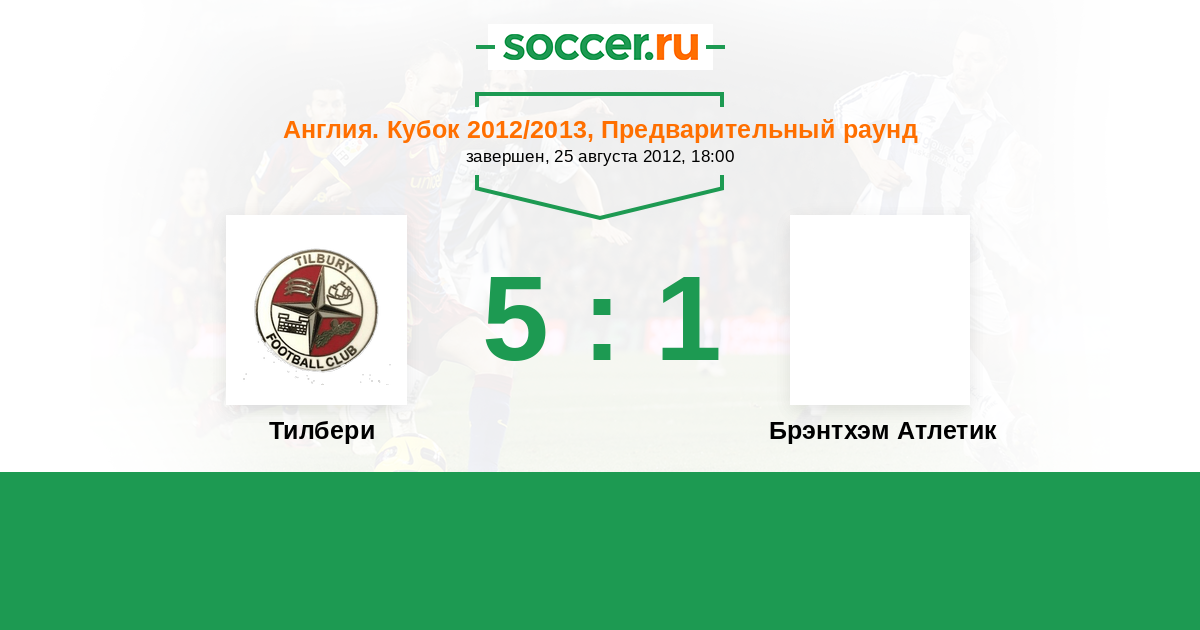 Тилбери - Брэнтхэм Атлетик: обзор матча 25 августа 2012