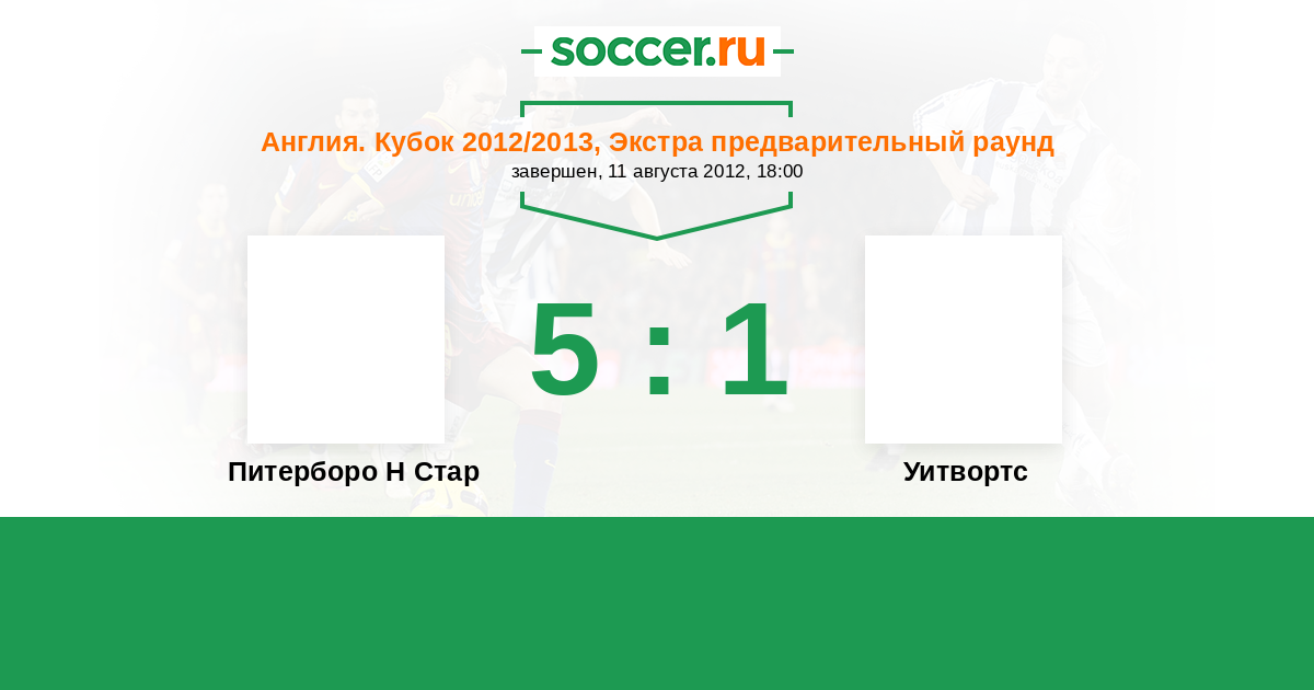 Питерборо Н Стар - Уитвортс: обзор матча 11 августа 2012