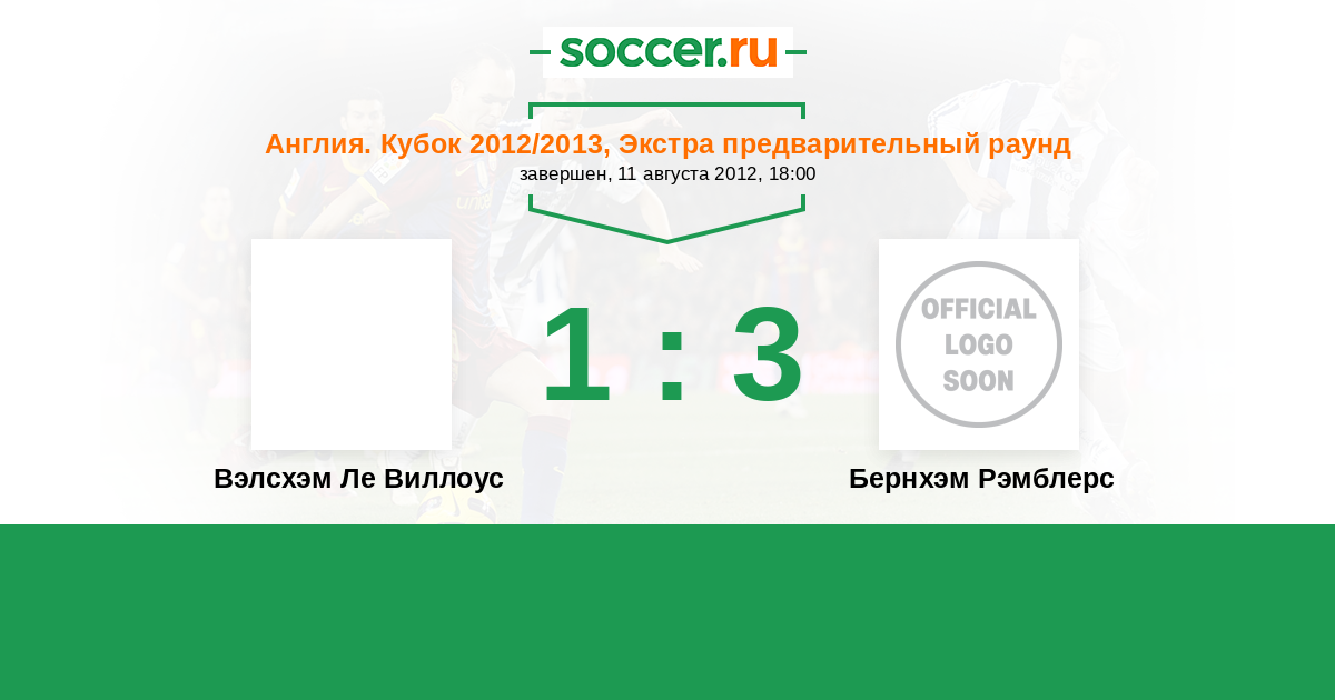 Вэлсхэм Ле Виллоус - Бернхэм Рэмблерс: обзор матча 11 августа 2012
