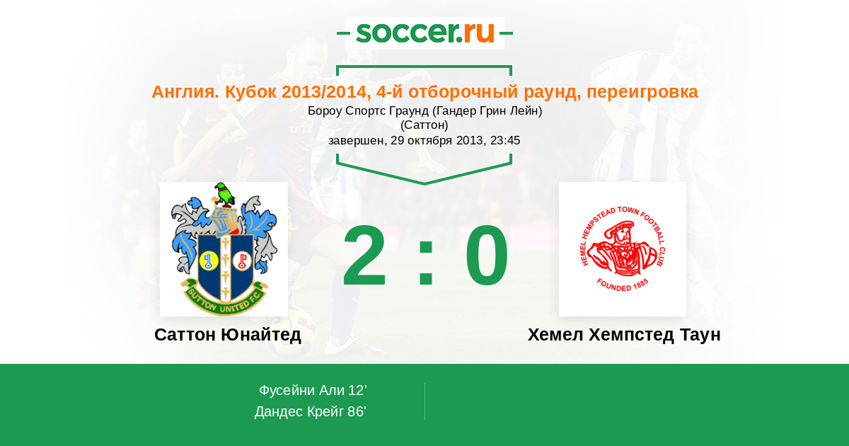 Саттон Юнайтед - Хемел Хемпстед Таун: обзор матча 29 октября 2013