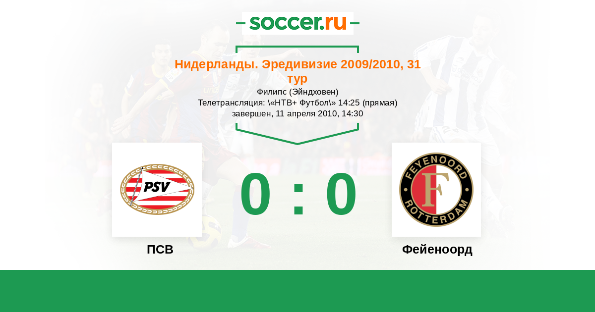 ПСВ - Фейеноорд: обзор матча 11 апреля 2010