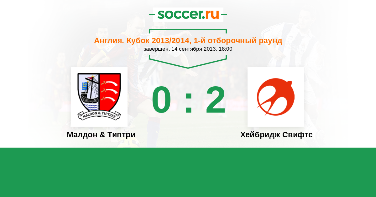 Малдон & Типтри - Хейбридж Свифтс: обзор матча 14 сентября 2013