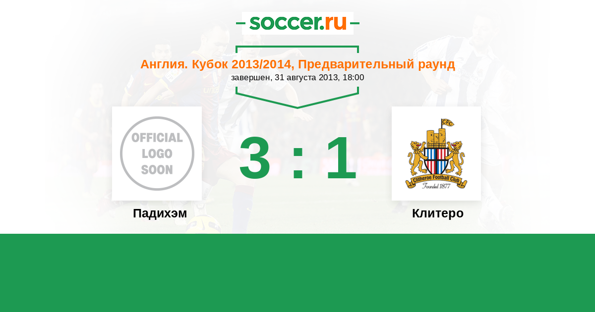 Падихэм - Клитеро: обзор матча 31 августа 2013