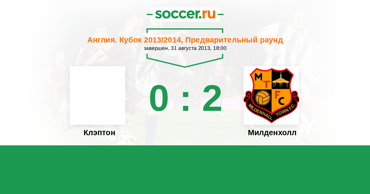 Клэптон - Милденхолл: обзор матча 31 августа 2013