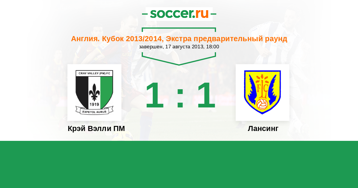 Крэй Вэлли ПМ - Лансинг: обзор матча 17 августа 2013