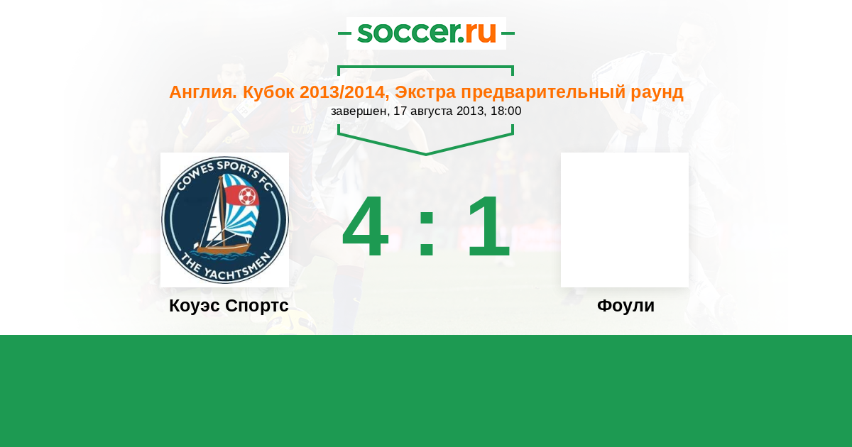 Коуэс Спортс - Фоули: обзор матча 17 августа 2013