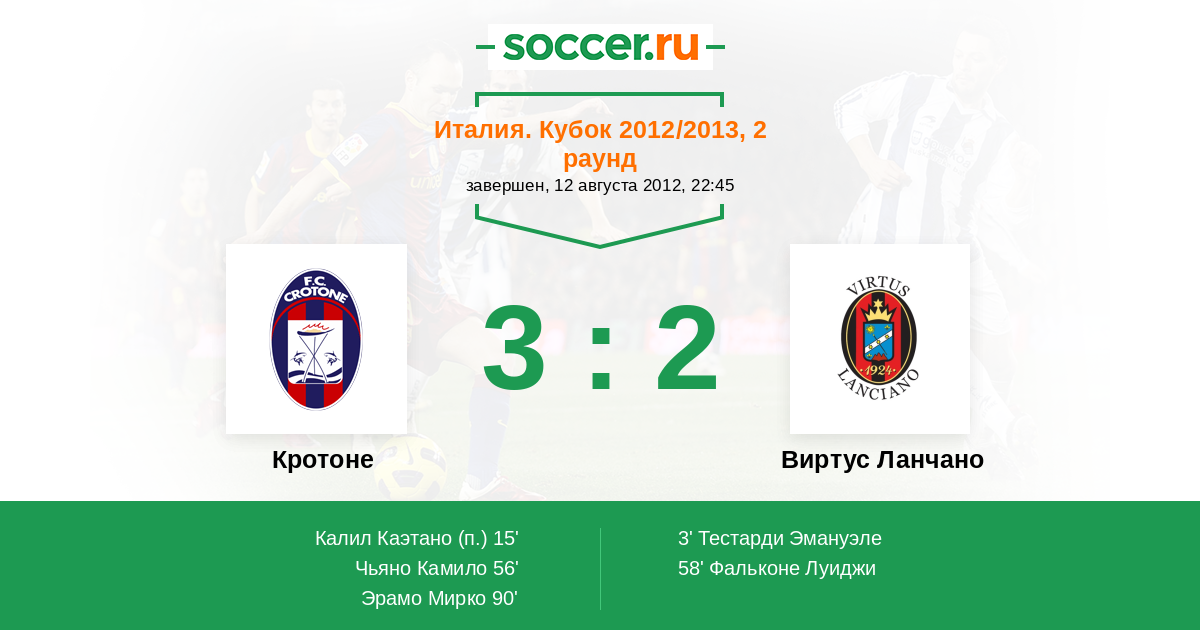 Кротоне - Виртус Ланчано: обзор матча 12 августа 2012