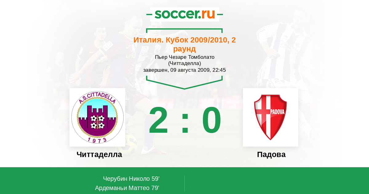 Читтаделла - Падова: обзор матча 9 августа 2009
