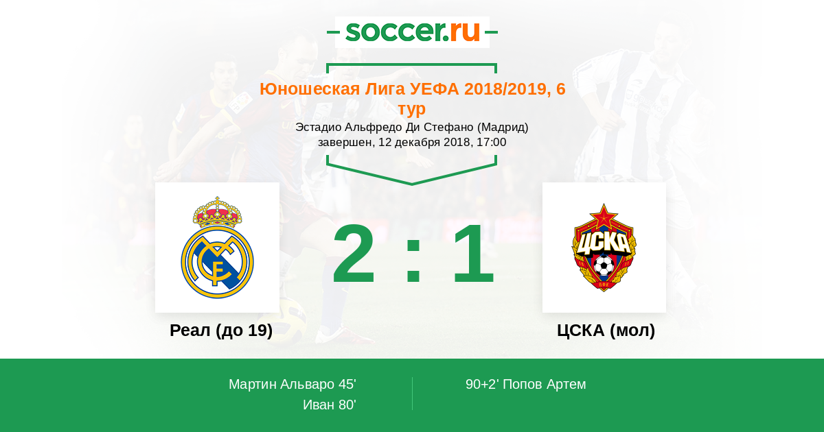Реал (до 19) - ЦСКА (мол): обзор матча 12 декабря 2018