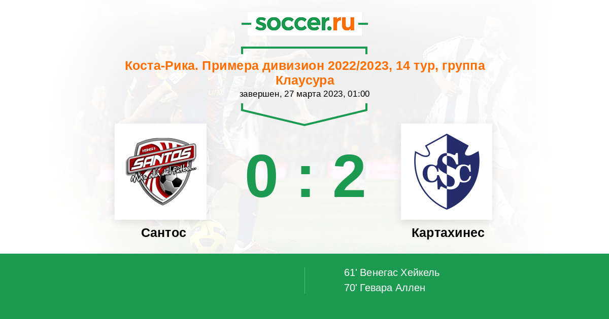 Сантос - Картахинес: обзор матча 27 марта 2023