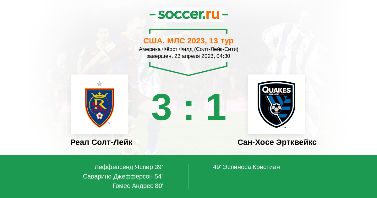 Реал Солт-Лейк - Сан-Хосе Эртквейкс: обзор матча 23 апреля 2023