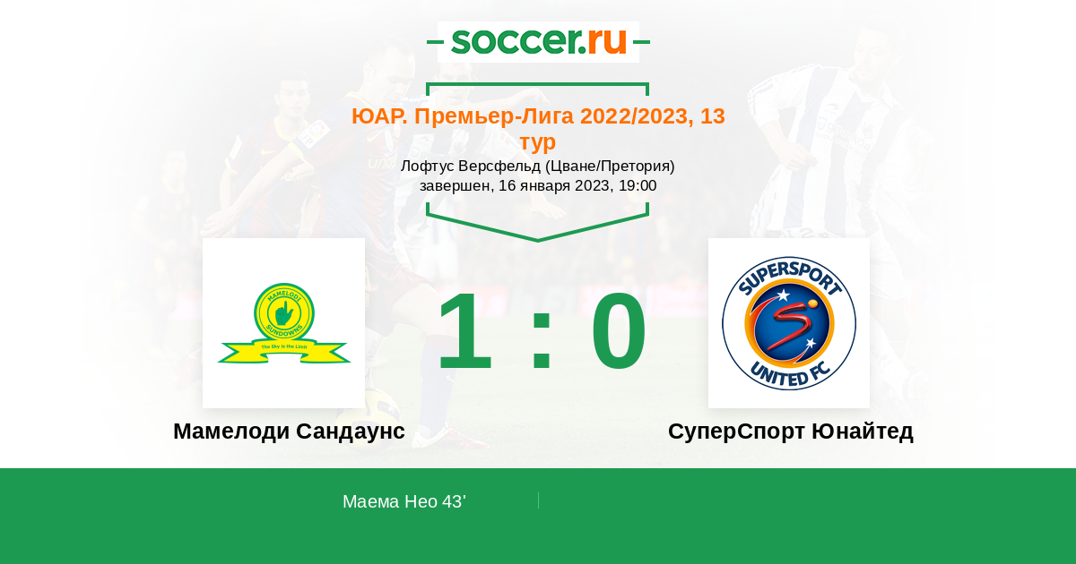 Мамелоди Сандаунс - СуперСпорт Юнайтед: обзор матча 16 января 2023