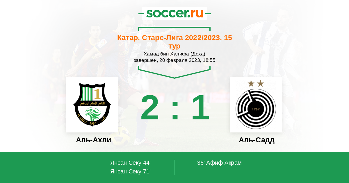 Аль-Ахли - Аль-Садд: обзор матча 20 февраля 2023